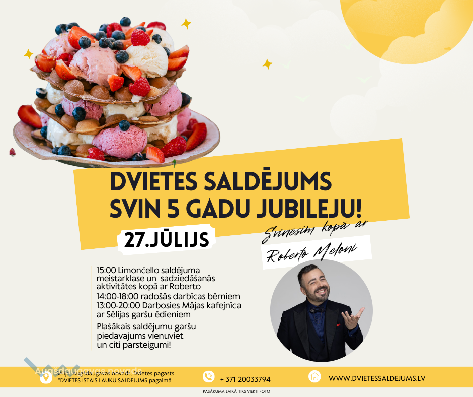 27. jūlijā Itālijas noskaņās kopā ar Roberto Meloni Dvietes saldējums svinēs pirmo piecu gadu jubileju!