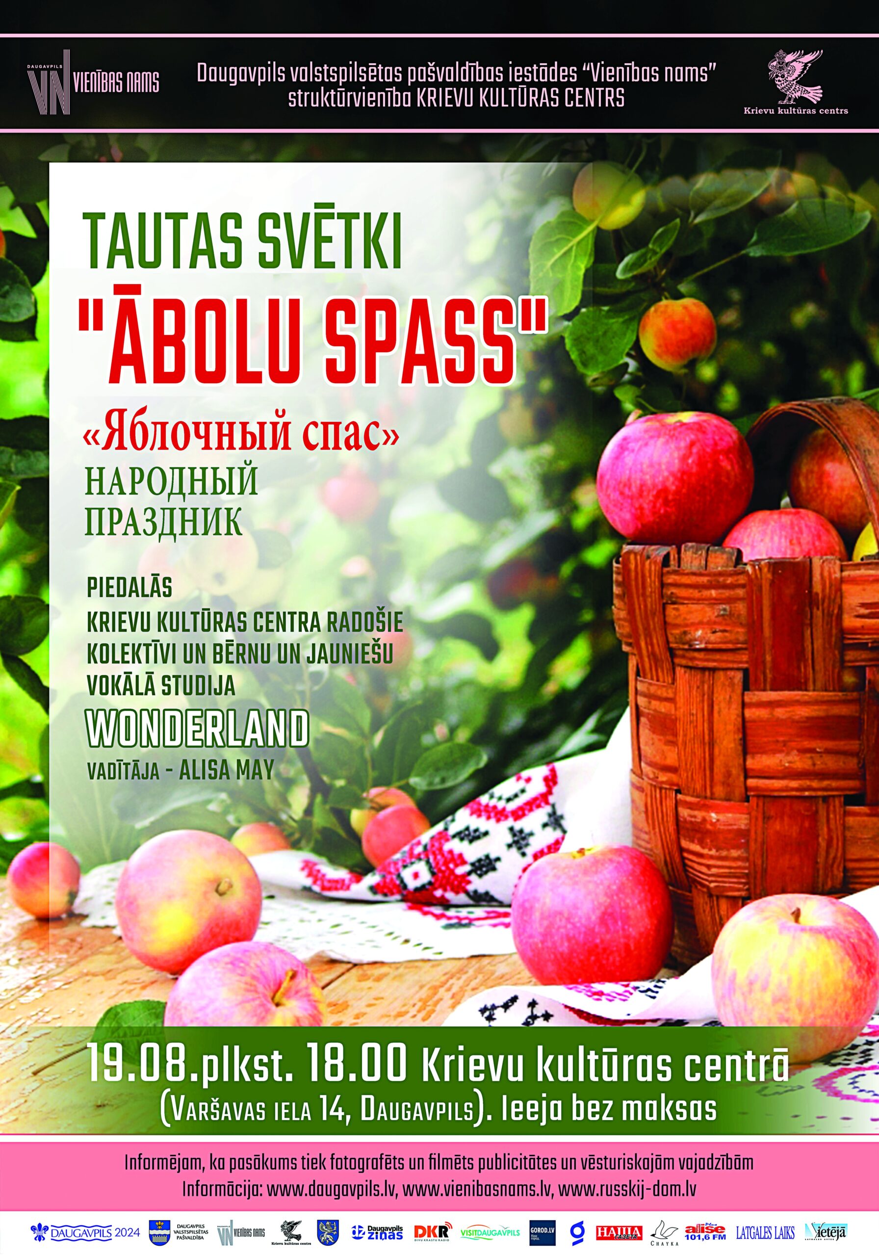 Pirmdien, 19. augustā, plkst. 18.00 Vienības nama Krievu kultūras centra pagalmā (Varšavas ielā 14) notiks tautas svētku “Ābolu Spass” svinēšana.