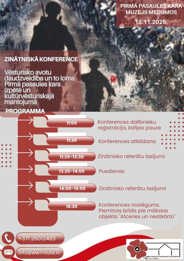 24.10.202513. novembrī Pirmā pasaules kara muzejā Medumos norisināsies zinātniskā konference “Vēsturisko avotu daudzveidība un to loma Pirmā pasaules kara izpētē un kultūrvēsturiskajā mantojumā”.