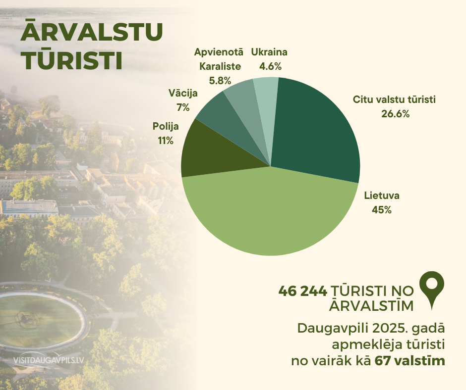 Daugavpils turpina attīstīties kā moderns un daudzpusīgs tūrisma galamērķis. Investējot pakalpojumu kvalitātē un piedāvājuma dažādībā, mēs tiecamies piesaistīt arvien vairāk ceļotāju gan no Latvijas, gan ārvalstīm. Pagājušā gada rezultāti ir labs pamats turpmākai izaugsmei, jaunu mērķu sasniegšanai un ziemas tūrisma piedāvājuma attīstībai.