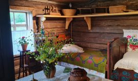 Restaurētajā mājā ir iekārtota ekspozīcija “Lūgšanu istaba”, kura atspoguļo 20. gs. sākuma vecticībnieku dzīvojamās istabas interjeru – “Sarkano stūri”, kurā apskatāmi reliģiskā kulta un sadzīves priekšmeti, “Melno” jeb ķēķa kaktu ar krievu krāsni, plīti un virtuvē izmantojamiem priekšmetiem. Telpas centra ir saimes galds un lauku sētas interjera priekšmeti. 20. gs. sākumā šajā mājā dzīvoja Isaja un Feodosijas Jermolajevu ģimene, un viņu 5 bērni. Istabā saimnieki svētdienās aicināja sādžas iedzīvotājus, visbiežāk gados vecus, slimus cilvēkus, arī bērnus, kuriem bija grūtības nokļūt līdz attālajam dievnamam uz kopējām lūgšanām. No šejienes arī ekspozīcijas nosaukums “Lūgšanu istaba”.