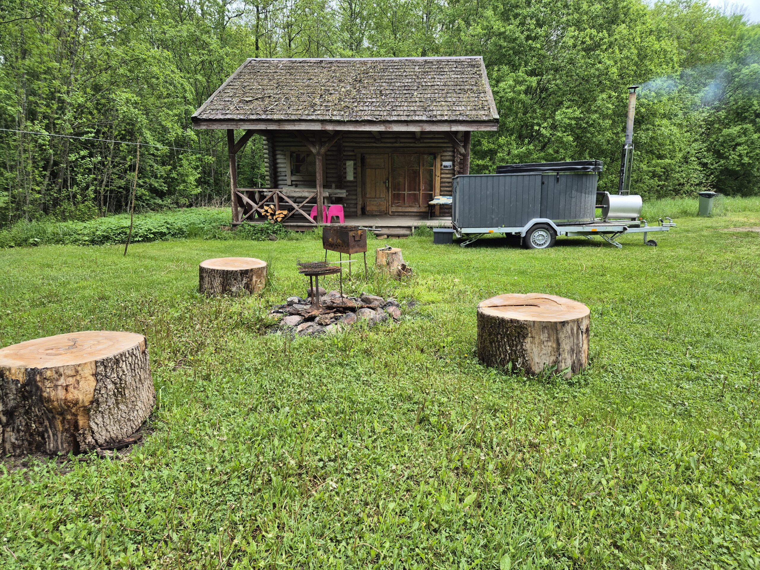 - aprīkota virtuve (trauki, ledusskapis, WC, dušas kabīne, karstais ūdens, malka un mangāls);