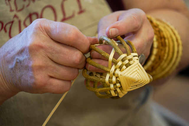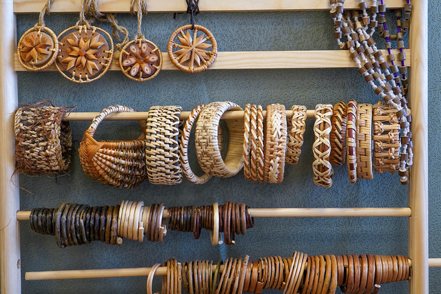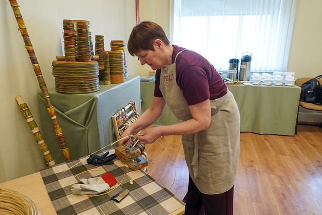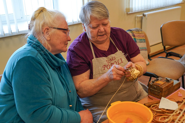 Špoģu mūzikas un mākslas skolā klūdziņu un sloksnīšu pīšanas darbnīcā tautas lietišķās mākslas studijas “Pūpoli” dalībnieki un vadītāja Maija Kivleniece apmeklētājiem mācīja pīt rokassprādzes un arī nelielus kuloniņus tradicionālajās sloksnīšu pinumu tehnikās. Šo prasmi varēja apgūt gan lieli, gan mazi un doties mājās ar skaistu rotaslietu.