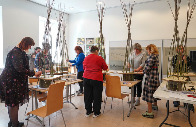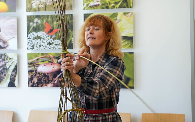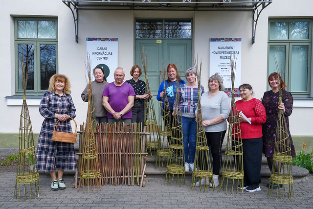Naujenes Novadpētniecības muzejā norisinājās pīšanas darbnīca Inas Vaikules vadībā, kur varēja iemācīties no klūgām nopīt vīteņaugu balstu, kas ir lielisks dekors ikvienā dārzā un noderēs gan puķu zirņu, gan citu vīteņaugu dobēs.