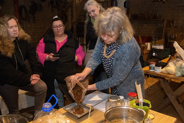 Raiņa mājā Berķenelē aizvadīta aizraujoša nodarbība “Dzijas krāsošana ar sēnēm un ķērpjiem”, ko vadīja mikoloģe un viena no “Lielās sēņu grāmatas” autorēm Diāna Meiere. Meistarklases laikā viņa demonstrēja iepriekš kodinātas dzijas krāsošanas procesu, kā arī iepazīstināja ar sēņu micēlija daudzveidīgajām izmantošanas iespējām mūsdienās. Izrādās, sēņu pigmentu var izmantot pat tik neierastā veidā kā matu krāsošanai, no piepēm iespējams veidot sēņu “ādas” somiņas u.c.
