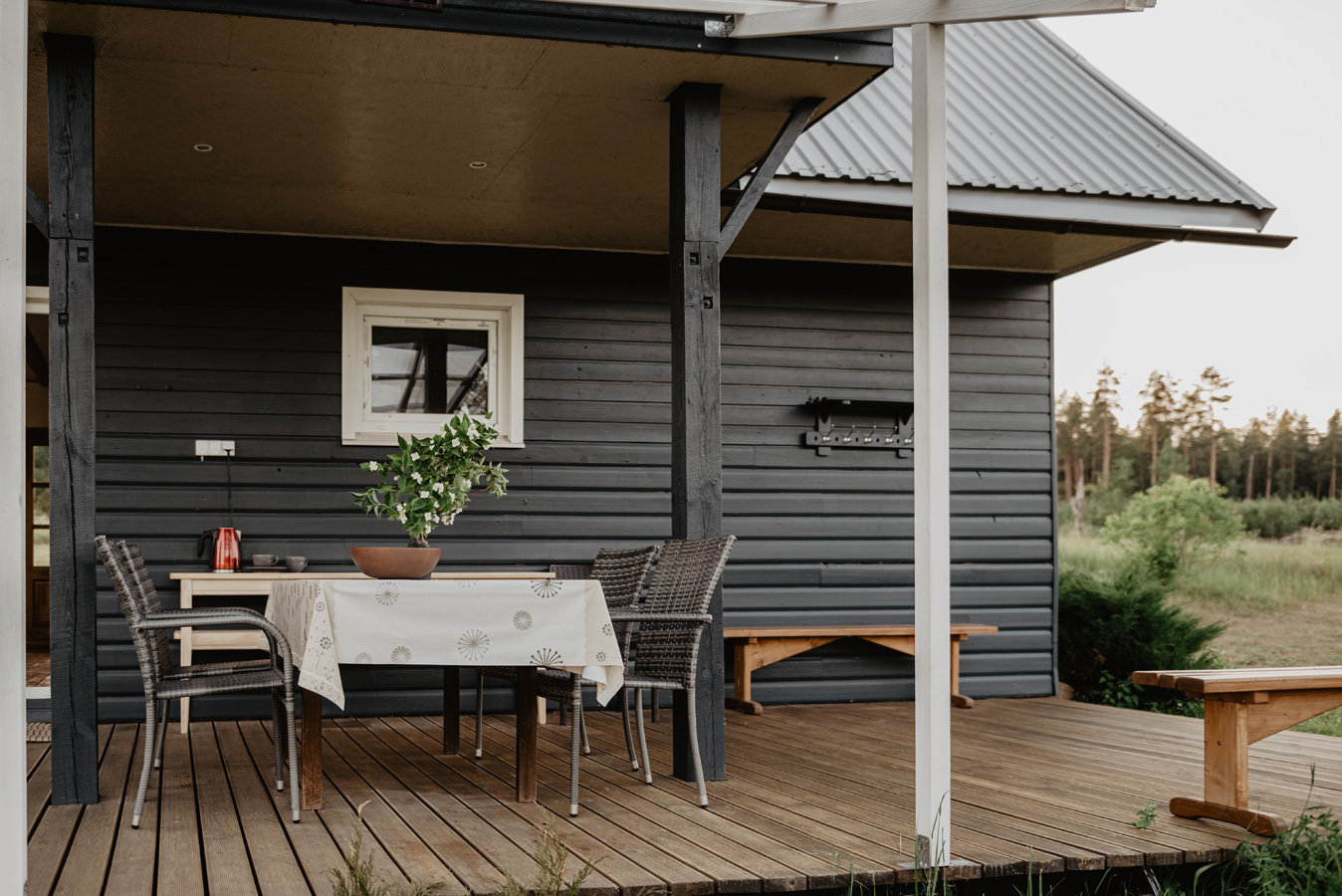 Pēc vienošanās pieejami arī vietējie lauku labumi – medus, dārzeņi, sezonas zaļumi.