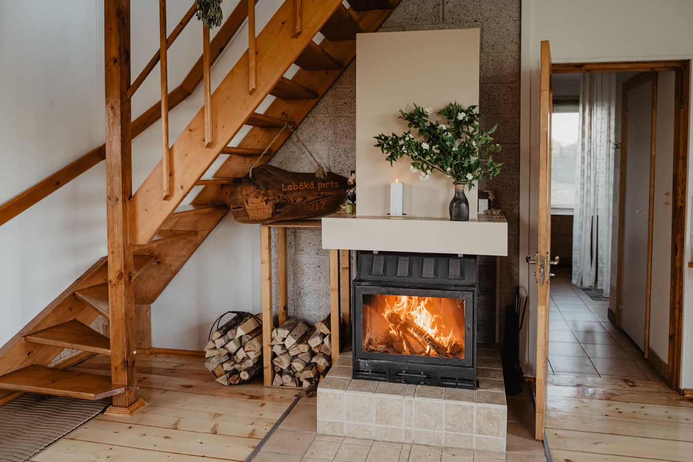 – viesistaba ar kamīnu,