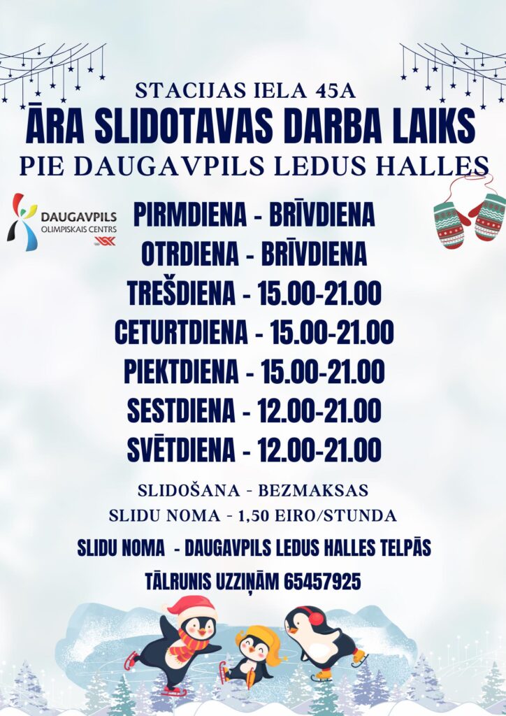 Daugavpils Centrālajā parkā ir atvērta āra slidotava. Slidotava atrodas pie Daugavpils Ledus halles (Stacijas ielā 45A) un ir lieliska vieta, kur aktīvi un jautri pavadīt brīvo laiku, brīvdienas vai ziemas vakarus kopā ar ģimeni un draugiem.