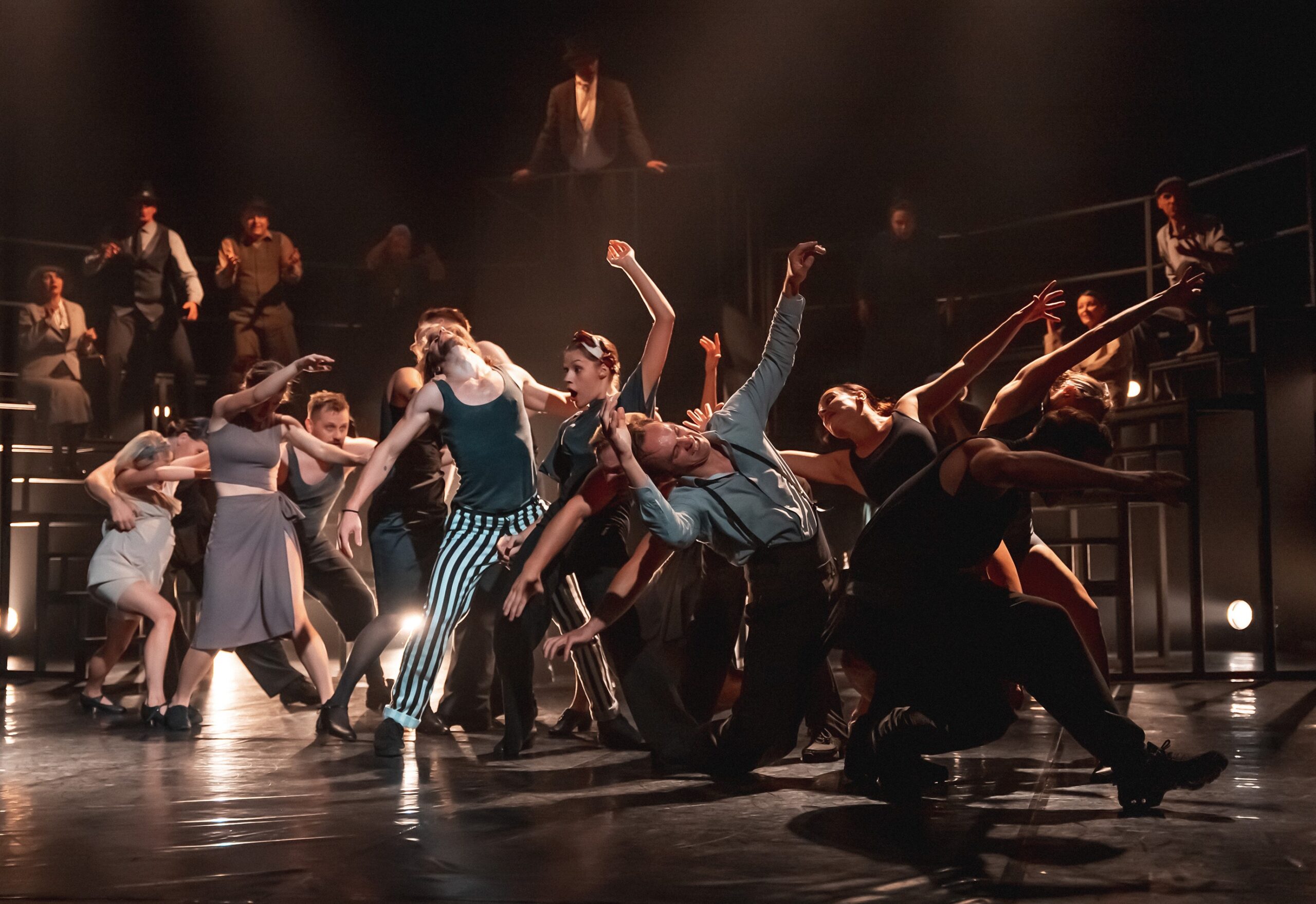 Izrāde “Nodzītus zirgus nošauj” ir kustību izrāde, kas veidota pēc amerikāņu rakstnieka Horasa Makoja romāna „They Shoot Horses, Don’t They?” motīviem. Tajā atspoguļots ilgstošs deju maratons, kura dalībnieki, izmisuma vadīti, ir gatavi uz visu, lai iegūtu apsolīto laimestu. Horeogrāfe Irina Bogeruka par darbu šajā izrādē saņēma “Spēlmaņu nakts” balvu kategorijā “Gada horeogrāfs”. Izrāde bija pārstāvēta arī divās “Dejas balvas” nominācijās.