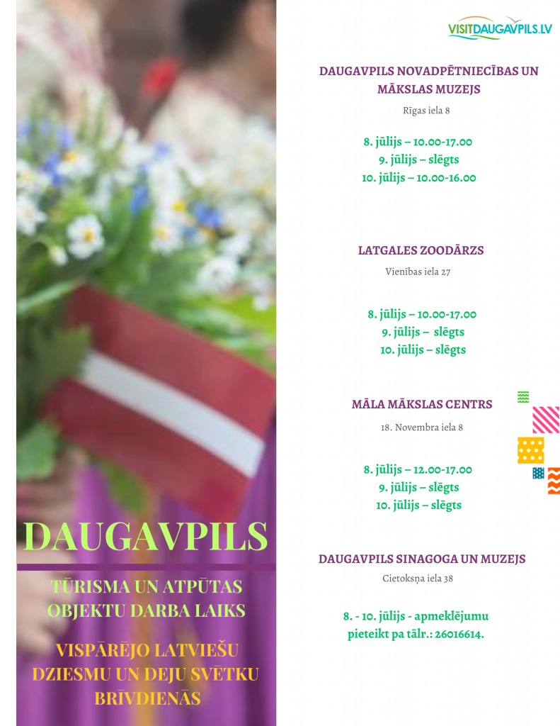 Daugavpils tūrisma un atpūtas objektu darba laiks Vispārējo latviešu Dziesmu un deju svētku brīvdienās 29.06.2023