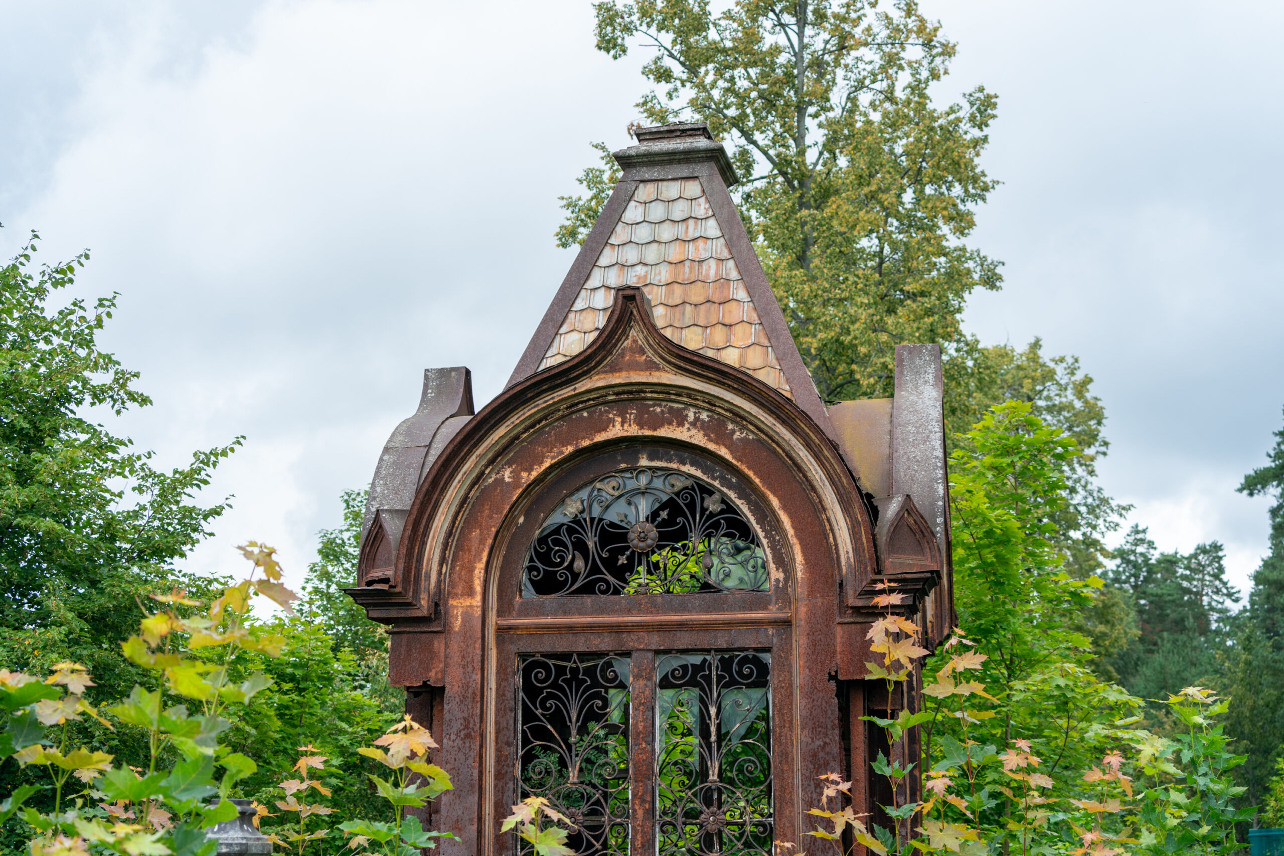 Das Walmdach ist mit rhombischem Blech bekleidet.