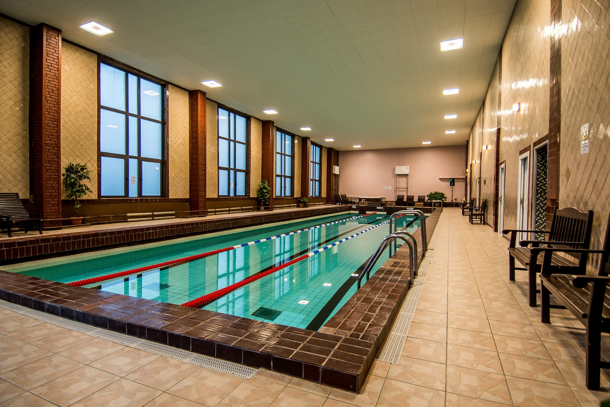 Der Sportkomplex bietet 14 komfortablen Zimmern mit 27 Plätzen – 5 Zwei-Bett-Zimmer mit Doppelbett, 8 Zwei-Bett-Zimmer mit 2 Betten, 1 Einzelzimmer, an. Im Angebot sind TV/SAT, Internet, sowie aktive Erholung, Entspannung und SPA: Salzraum, 25 m langes Schwimmbecken, Jacuzzi, Infrarotkabine, verschiedene Saunas (römische, Salz, Eis), Biosauna, Aromasauna, Tischtennis, Billard, Sportinventar, und Fitnessclub.