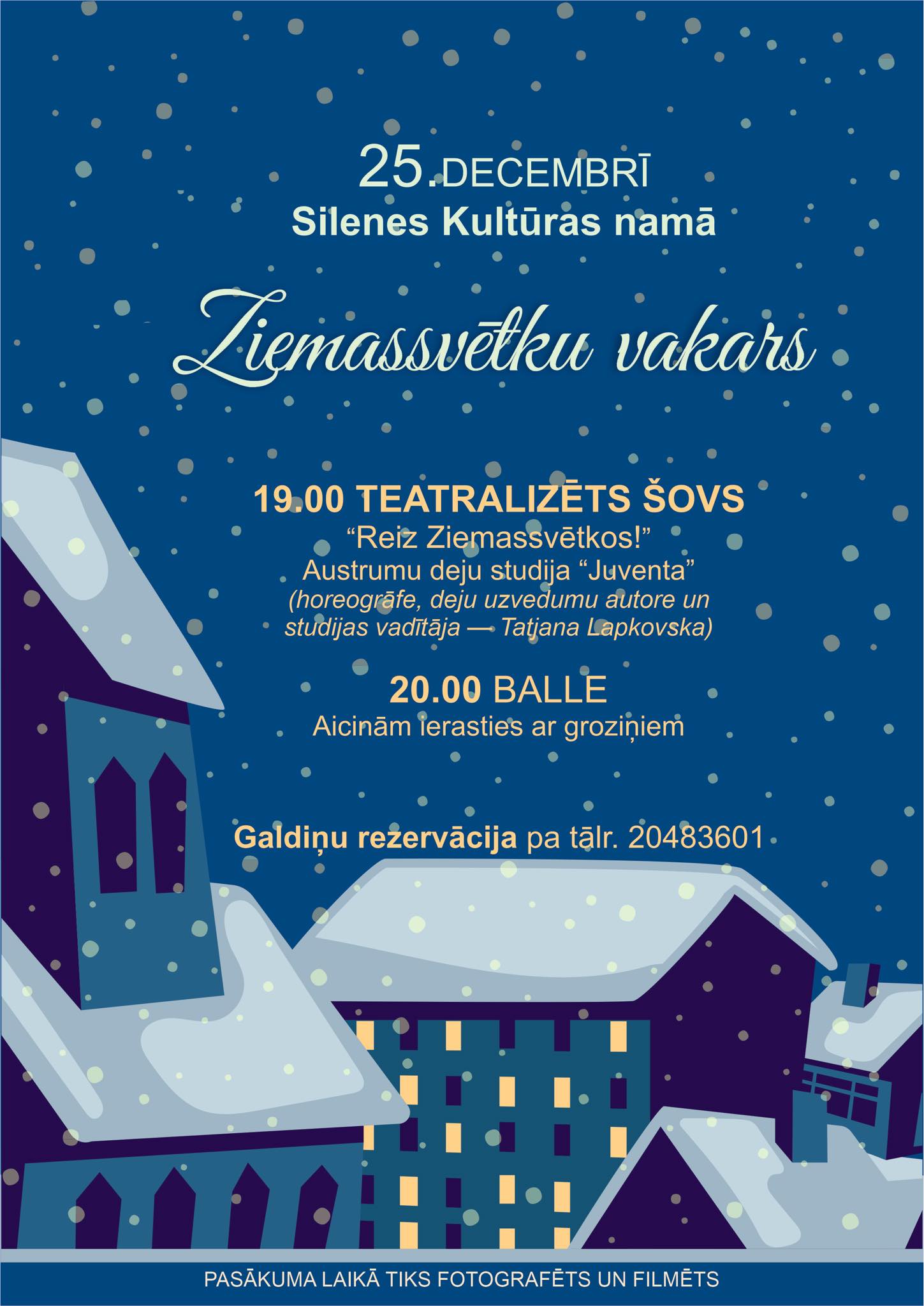 25. decembrī no 19.00 Silenes Kultūras namā Ziemassvētku vakars