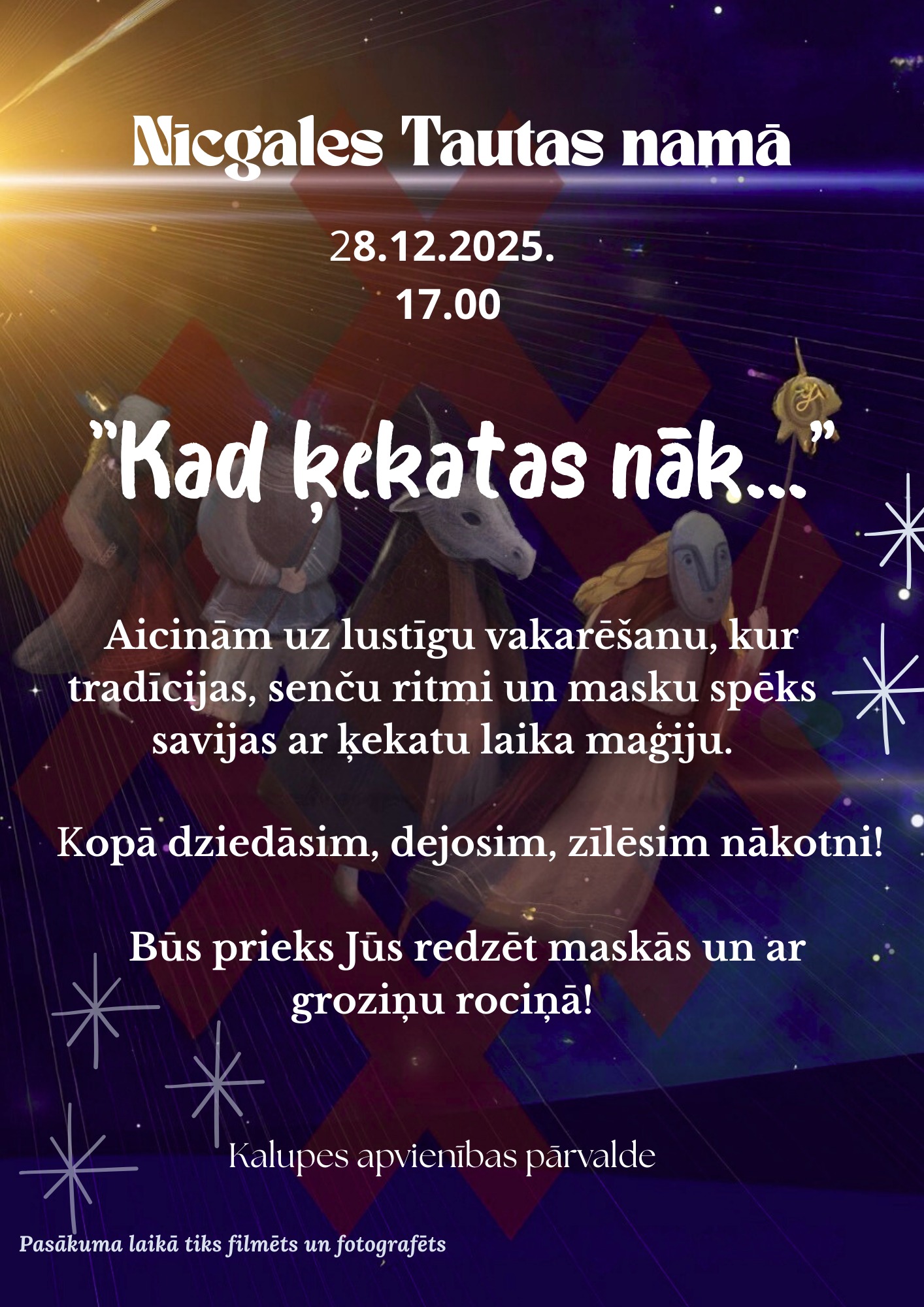 28. decembrī 17.00. Nīcgales Tautas namā Vakarēšana “Kad ķekatas nāk”