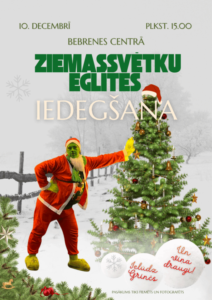 10. decembrī 15.00 Bebrenes ciemata centrā Ziemassvētku eglītes iedegšana “Grinčs un viņa draugi’’