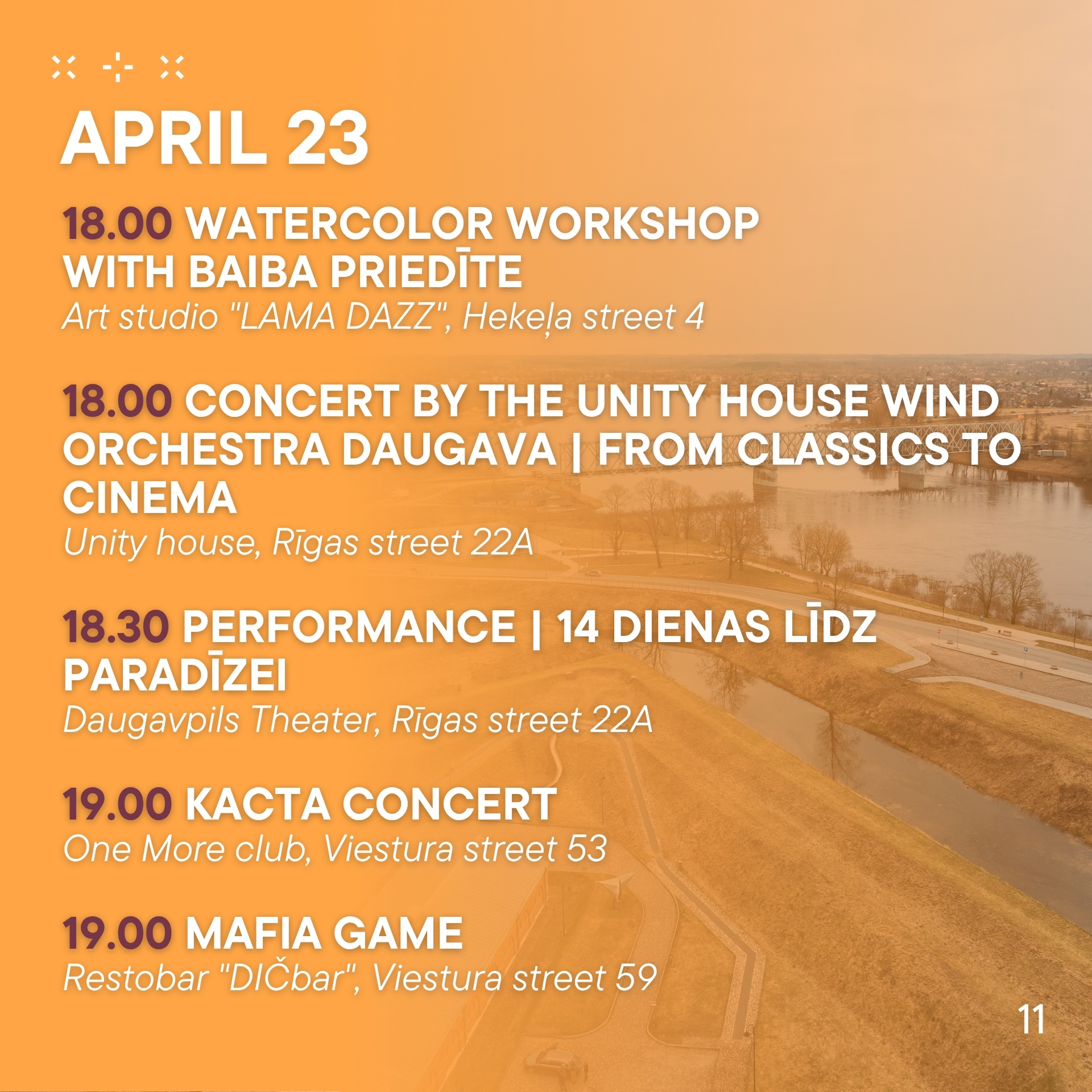 - 18.00 | Concert by the Vienības Nams Wind Orchestra DAUGAVA “From Classics to Cinema” | Vienības Nams, Rīgas Street 22A