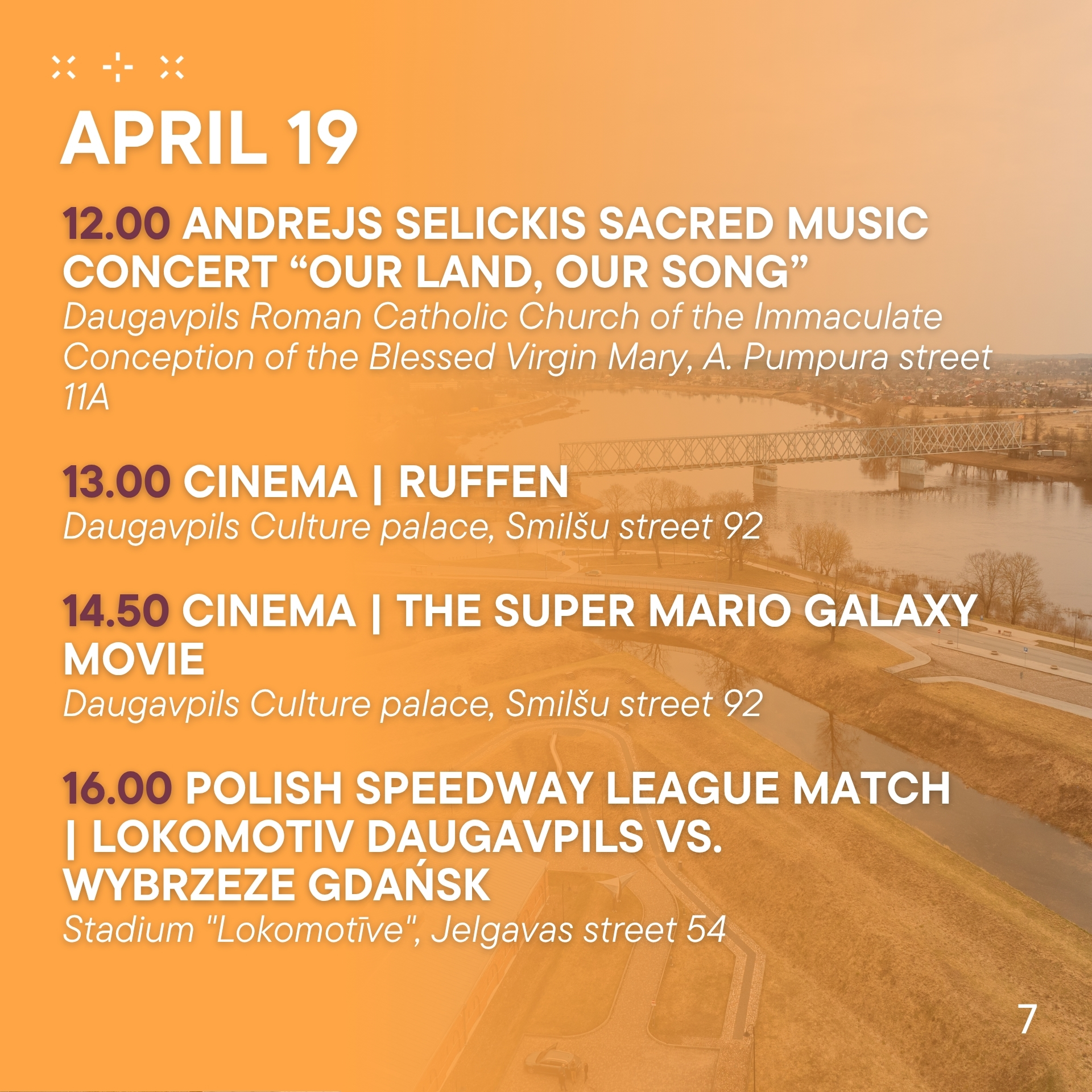 - 12.00 | Andrejs Selickis Sacred Music Concert “Our Land, Our Song” | Daugavpils Roman Catholic Church of the Immaculate Conception of the Blessed Virgin Mary, A. Pumpura Street 11A