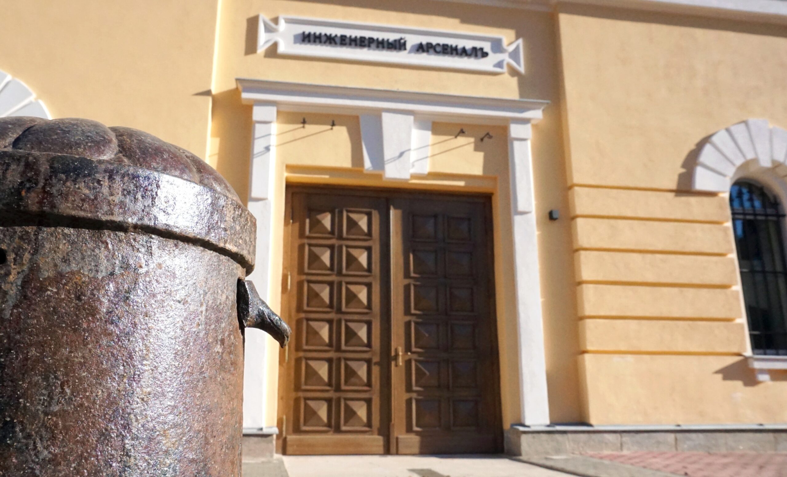 Impressive two-storey building of the Engineer arsenal was built by architect Alexander Shtaubert in 1840-1845. Building is an architectural monument of state significance. Engineering arsenal was used to produce and repair armament supplies, tooling for fortification and combat engineer measures.