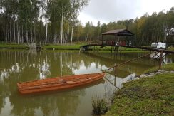 On the ground floor of the main house guests can use the banquet hall (for up to 20 persons), kitchen, pool, sauna, WC, showers, and on the second floor there is a banquet hall for up to 40 persons with bathroom and jacuzzi. There is also a catering service upon request. The bedroom windows overlook the pond and the garden. Each bedroom has a balcony. Fountains, swings, trampoline, volleyball and football field, black sauna, pond (fishing is possible), boat rental, several arbours. It is possible to organize photo sessions.