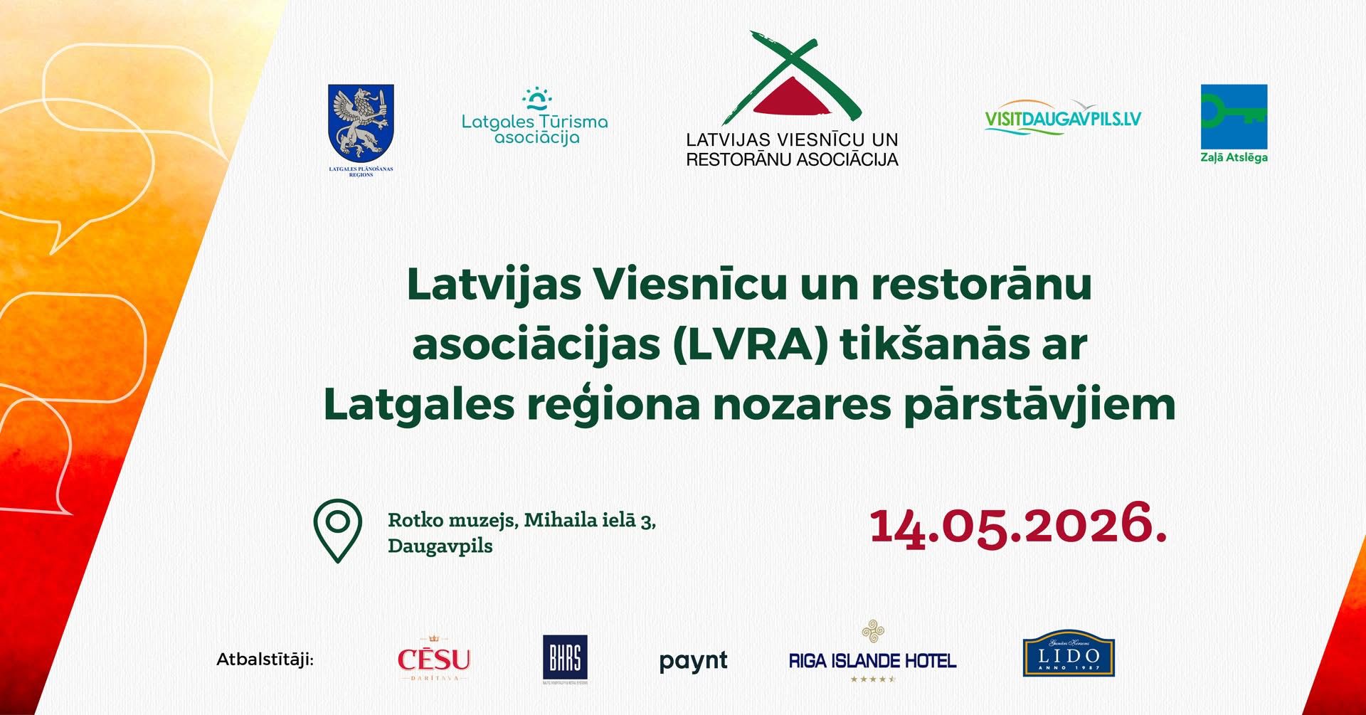 Latvijas Viesnīcu un restorānu asociācija sadarbībā ar Daugavpils valstspilsētas pašvaldību aicina Latgales reģiona viesmīlības un tūrisma nozares pārstāvjus piedalīties profesionālajā tīklošanās pasākumā, kas norisināsies 14. maijā Rotko muzeja konferenču zālē.