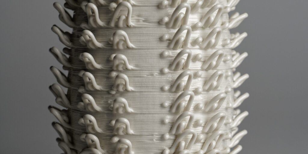 - Roks Dovidēns. Meipinas vāze. Porcelāns, glazūra, 3D druka. 2024