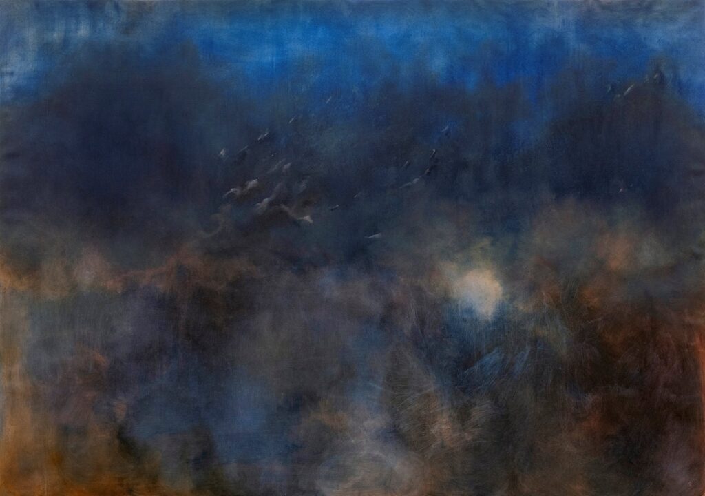 - Diāna Rudokiene. Mijkrēslis. Audekls, eļļa, zelta folija. 80 x 160 cm. 2024