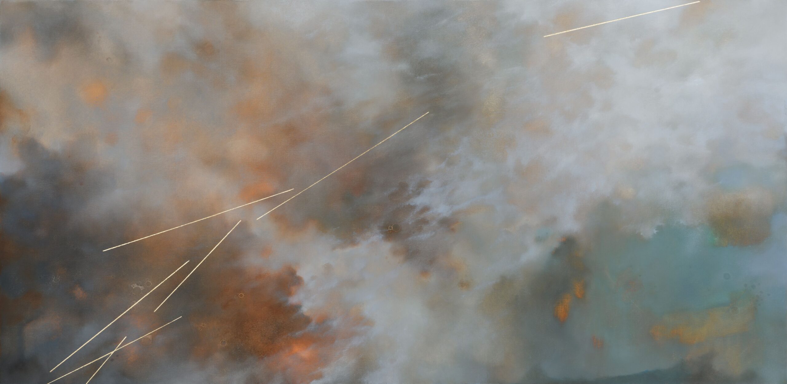 - Diāna Rudokiene. Mijkrēslis. Audekls, eļļa, zelta folija. 80 x 160 cm. 2024