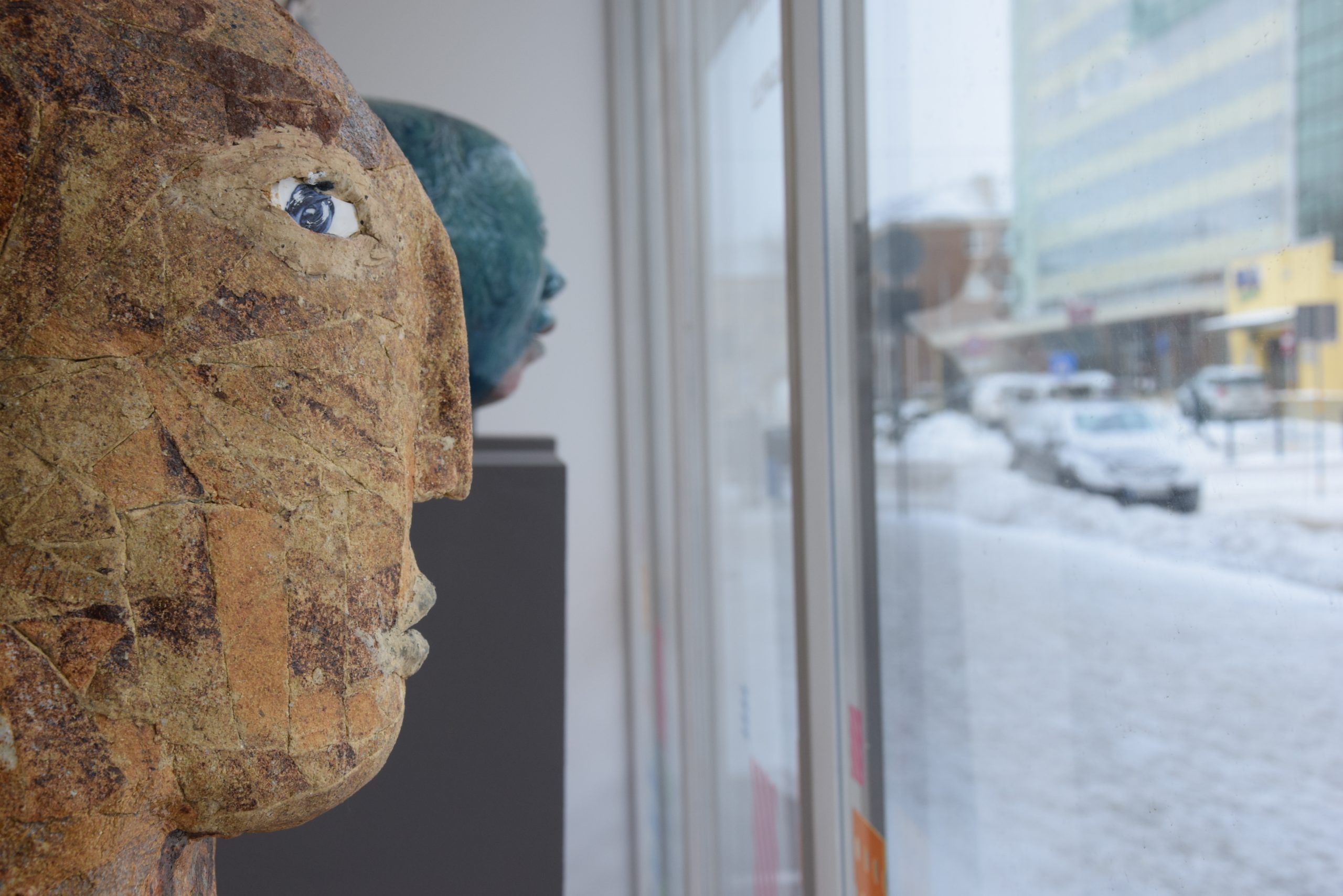 Daugavpils Tūrisma informācijas centra skatlogu – tikpat raibu, cik raiba ir pati Daugavpils – paspilgtina arī piecas pilnīgi dažādās tehnikās veidotas keramikas sejas. Janīnas Mironovas (Janina Myronova) (Polija), Jūlijas Repinas (Krievija), un Ievas Jurkas (Latvija) darbi radīti tepat Daugavpils cietoksnī keramikas simpozijos “Keramikas laboratorija”, savukārt Anetes Defortas (Anette Defoort) (Beļģija) un Klausa Gutovska (Klaus Gutowski) (Austrālija) veidotie darbi Rotko centra kolekcijā nonākuši pēc Latvijas Keramikas biennāles norisēm.