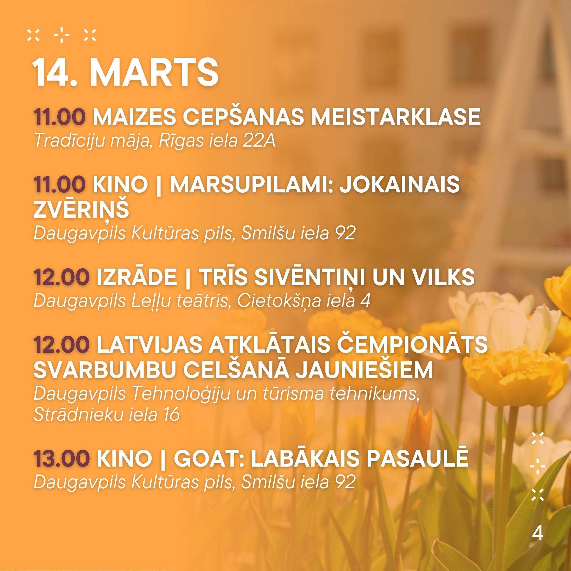 - 13.00 | KINO | “GOAT: LABĀKAIS PASAULĒ” | Daugavpils Kultūras pils, Smilšu iela 92