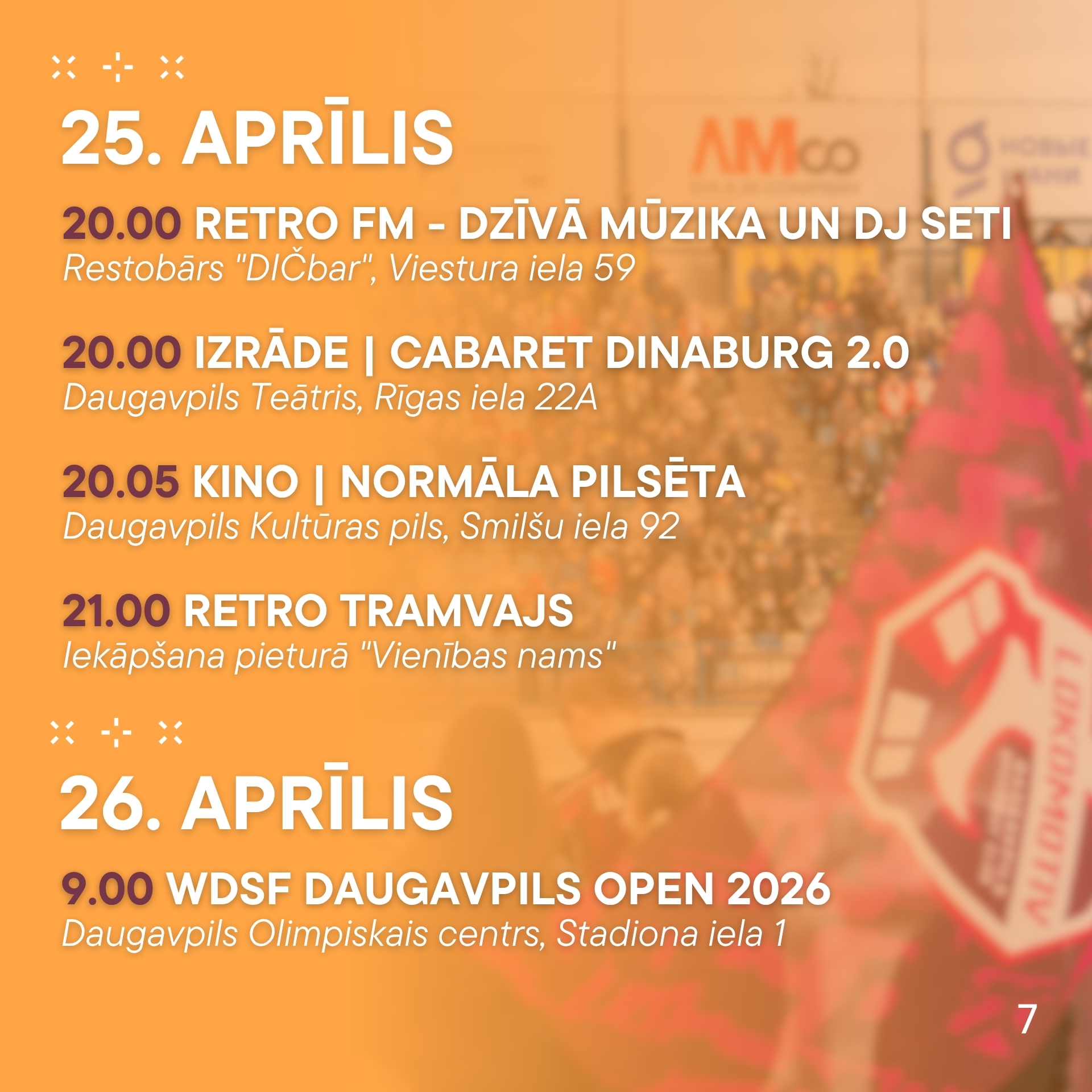 - 9.00 | WDSF Daugavpils Open 2026 | Daugavpils Olimpiskais centrs, Stadiona iela 1