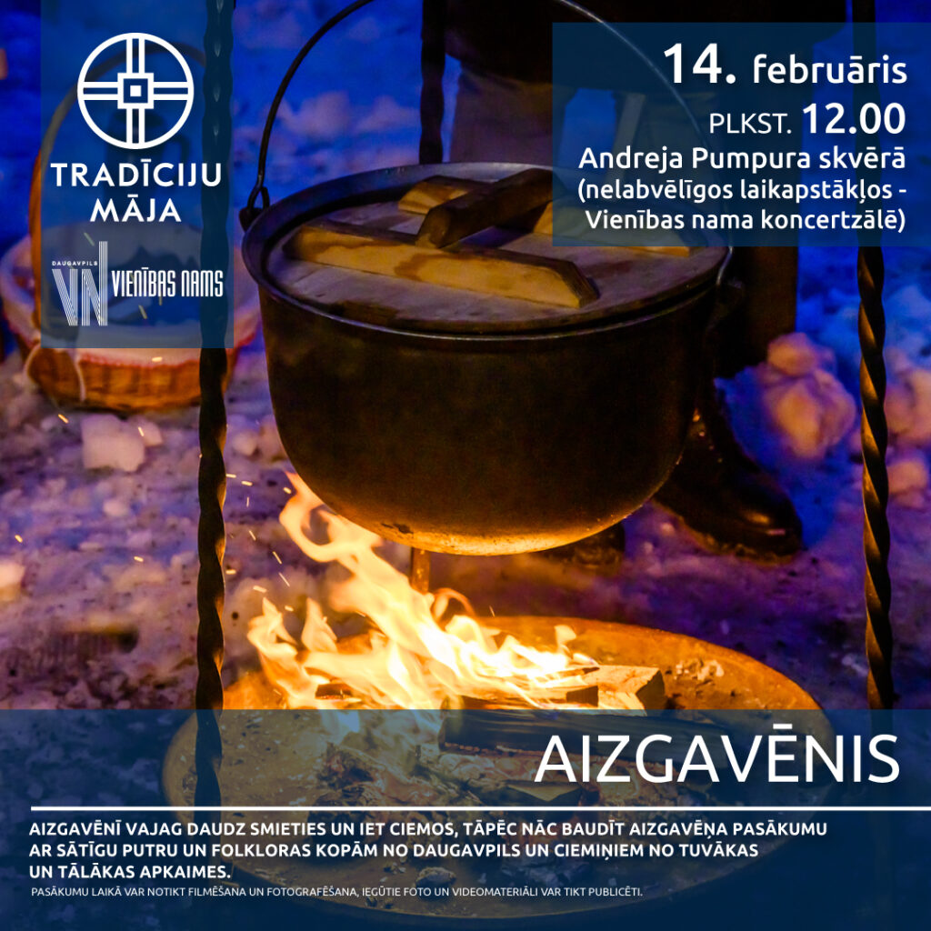 Šī gada 14. februārī plkst. 12.00 Andreja Pumpura skvērā (Daugavpilī) ar dziesmām, rotaļām, putras ēšanu un citām izdarībām notiks Aizgavēņa svinēšana.