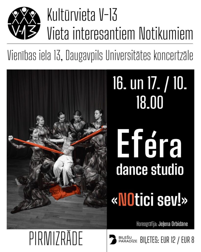 2025. gada 16. oktobrī plkst. 18.00 notiks Efera dance studio (Jeļenas Orbidānes vadībā) laikmetīgās dejas izrāde “NOtici sev!” pirmizrāde.