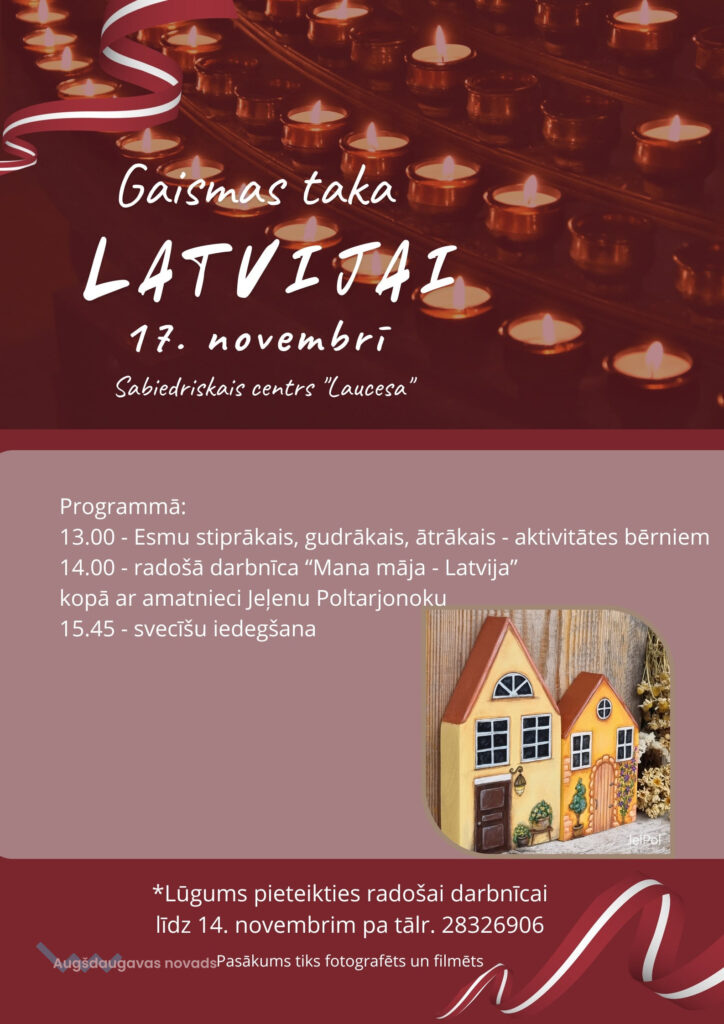 17. novembrī no plkst. 13.00 sabiedriskajā centrā “Laucesa” norisināsies pasākums “Gaismas taka Latvijai”.