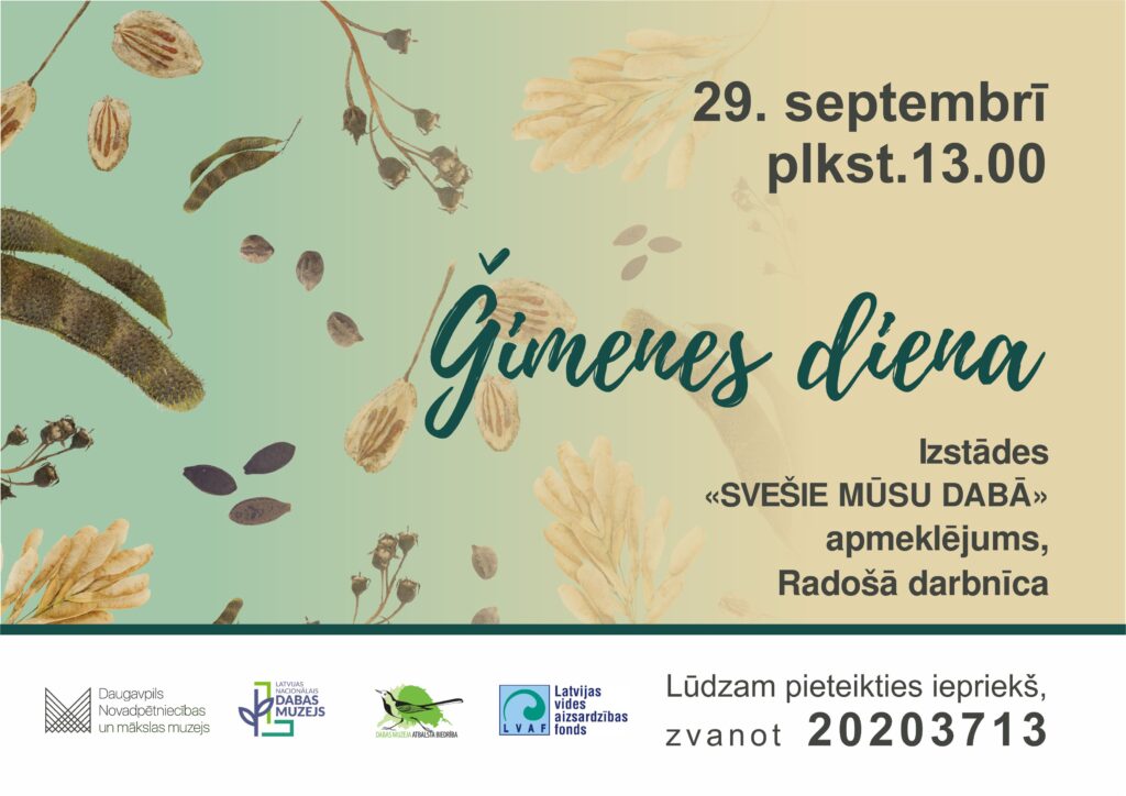 29. septembrī plkst. 13.00 Daugavpils Novadpētniecības un mākslas muzejā “Ģimenes diena” būs veltīta Latvijas dabas izzināšanai, tās ietvaros notiks Latvijas Nacionālā dabas muzeja izstādes „Svešie mūsu dabā” apmeklējums ar ekskursiju un radošā darbnīca „Herbārija veidošana”.