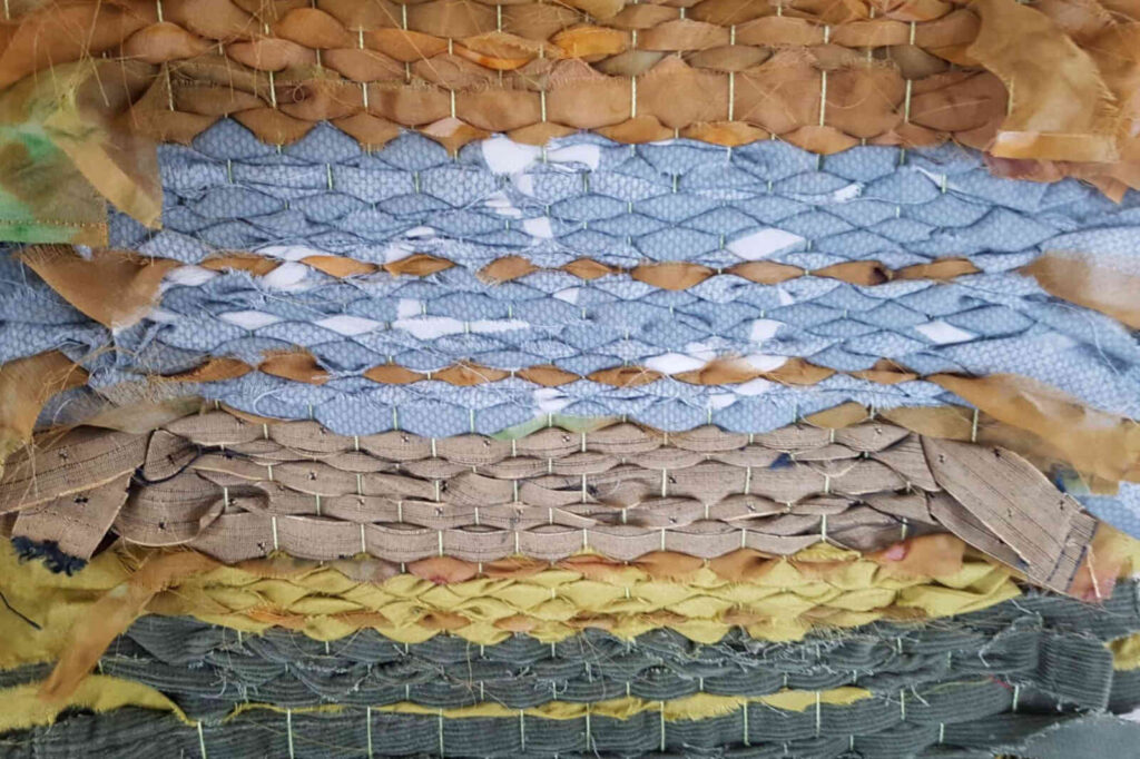 Darbi izpildīti aušanas tehnikā, radoši apvienojot tradicionālos paņēmienus ar mūsdienīgu skatījumu uz pārstrādi un ilgtspējīgu dizainu. “Katrs audums iegūst jaunu stāstu — kļūstot par mākslas darbu, kas iedvesmo domāt par atbildīgu patēriņu un vides saglabāšanu,” uzsvar darbu autori.