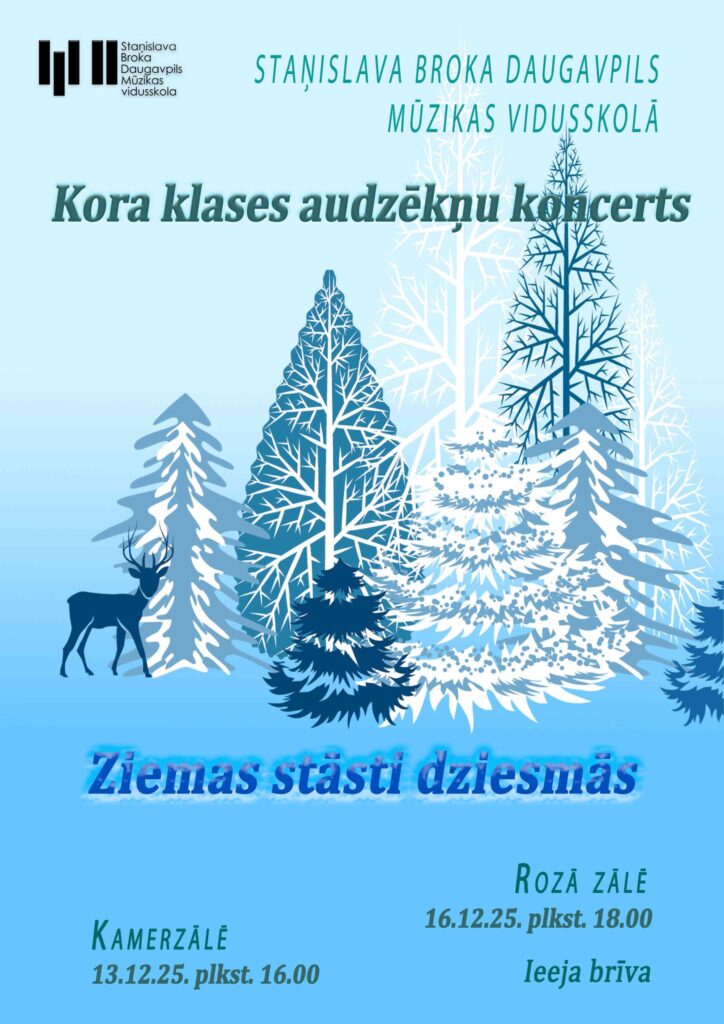 13. decembrī plkst. 16.00 Staņislava Broka Daugavpils Mūzikas vidusskolas kamerzālē notiks koncerts “Ziemas stāsti dziesmās”.