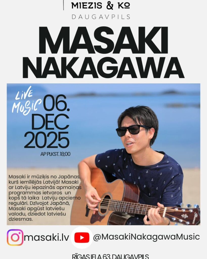 6. decembrī plkst. 18.00 krogā “Miezis un kompānija” notiks mūziķa Masaki Nakagawa koncerts.