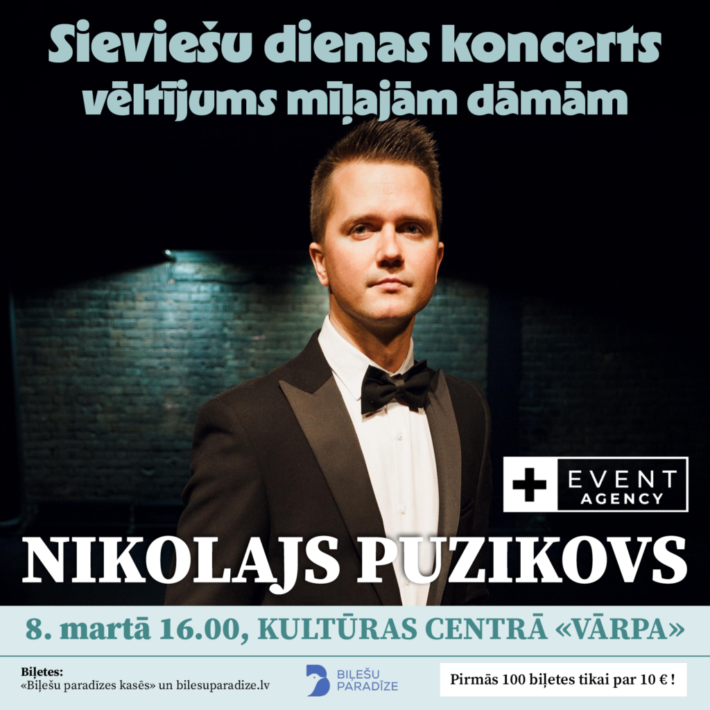 Nikolaja Puzikova koncerts Datums: 08.03.2025Laiks: 16:00 - 17:30Norises vieta: Augšdaugavas novada Kultūras centrs "Vārpa" martā 16.00 Augšdaugavas novada Kultūras centrā “Vārpa” Nikolaja Puzikova koncerts, biļetes Biļešu paradīze