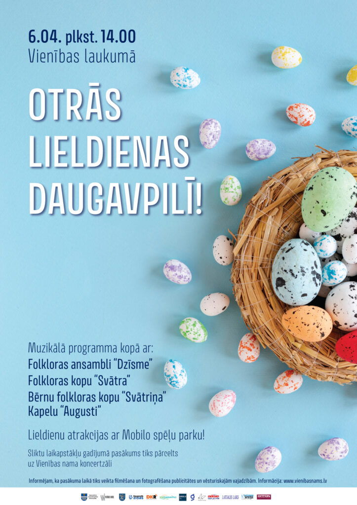 Šī gada 6. aprīlī no plkst. 14.00 līdz 16.00 Vienības nams aicina ikvienu uz Otro Lieldienu svinībām Vienības laukumā, kur gaidāma daudzveidīga un aizraujoša svētku programma visai ģimenei.