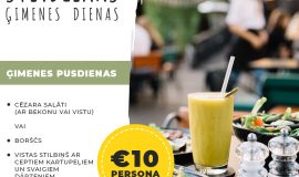 12.01.2020 @ 13:00 – 16:00 – Ideāls laiks un vieta, lai pavadītu laiku ar ģimeni, draugiem un uzkrātu jaunus spēkus un emocijas pirms darba nedēļas! Cenas: Pieaugušajiem – 25 € Bērniem līdz 3 gadiem – bezmaksas Bērniem no 4 līdz 12 gadiem – 12 € Transfērs pēc savlaicīgas rezervācijas Daugavpils – Silene Resort & SPA – Daugavpils 5 € /personai Informācijai […]