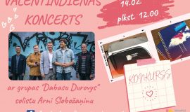 Romantisko svētku gaisotni radīs grupas „Dabasu Durovys” solists Arnis Slobožaņins, kura dziesmas saviļņos ikkatru sirdi. Pievienojies koncertam tiešsaistē un nodot sveicienu mīļotajam cilvēkam.