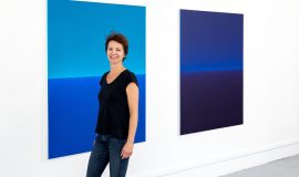 “Iekrāsotā gaisma, kas parādās franču mākslinieces Elisas Maršālas darbos, ir fokusēta telpā starp gleznas dažādajām sastāvdaļām, veidojot jaunu dimensiju.
