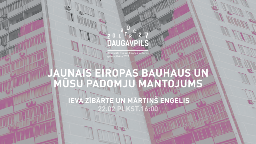 Daugavpils 2027 komanda aicina piedalīties pasākumā “Jaunais Eiropas Bauhaus un mūsu padomju mantojums”, kas notiks 22.februārī no plkst.16.00 līdz 17.00 Zoom tiešsaistē.