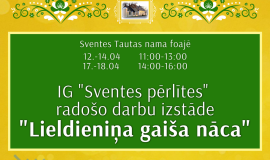 Sventes Tautas nama foajē skatāma IG “Sventes pērlītes” radošo darbu izstāde “Lieldieniņa gaiša nāca”.