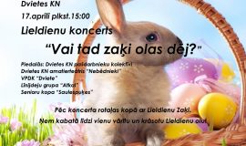17. aprīlī plkst. 15.00 Dvietes kultūras namā norisināsies Lieldienu koncerts “Vai tad zaķi olas dēj?”. Piedalās Dvietes kultūras nama pašdarbnieku kolektīvi, amatierteātris “Nebēdnieki”, VDPK “Dviete”, līnijdeju grupa “Atkal”, senioru kopa “Saulespuķes”. Pēc koncerta rotaļas kopā ar Lieldienu zaķi. Ņem kabatā līdzi vienu vārītu un krāsotu Lieldienu olu!