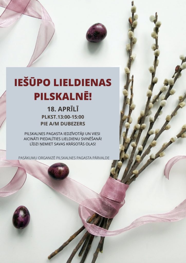 18. aprīlī plkst. 13.00 – 15.00 pie atpūtas mājas “Dubezers” Pilskalnes pagasta iedzīvotāji un viesi tiek aicināti piedalīties Lieldienu svinēšanā!