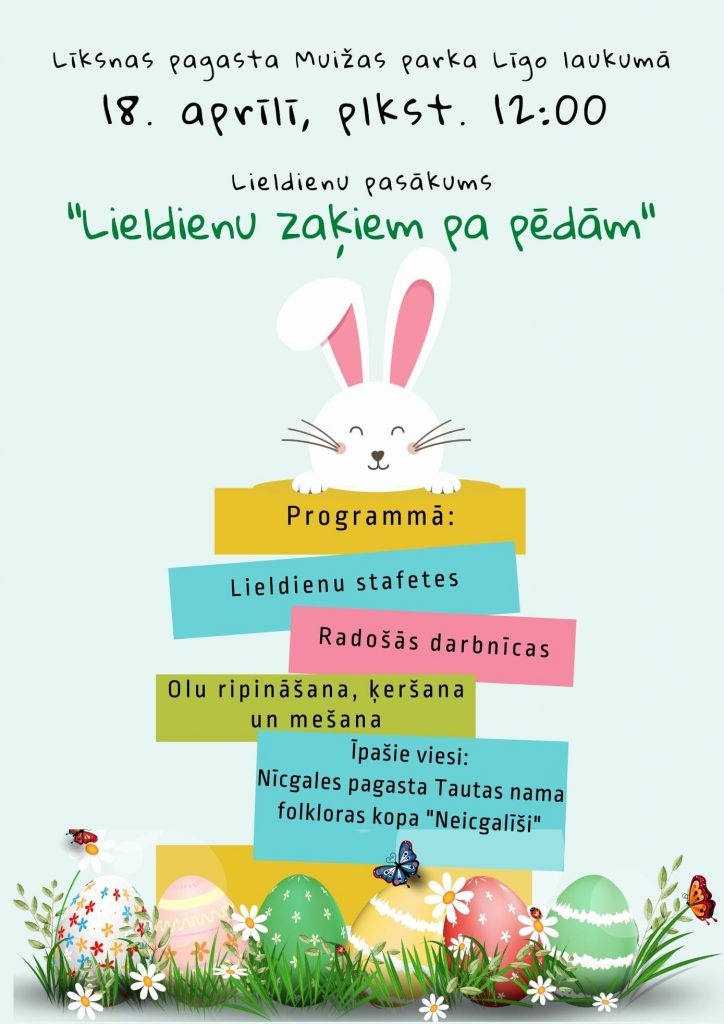 18. aprīlī plkst. 12.00 nāc kopā ar ģimeni uz Līksnas Muižas parka Līgo laukumu un svinēsim Lieldienas kopā!