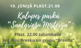 19. jūnijā plkst. 21.00 Kalupes parkā svētku sajūtu saulrieta laikā radīs trejdeviņas uguntiņas un mūzikas skaņas, kas atvērs vārtus ”mistērijai saulgriežos’’, tad satiksies zināmais ar nezināmo, sievišķais ar vīrišķo.
