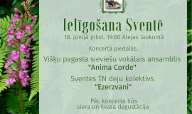 18. jūnijā plkst. 19.00 Alejas laukumā Sventē notiks ielīgošana Sventē. Koncertā piedalās: Višķu pagasta sieviešu vokālais ansamblis “Anima Corde” un Sventes TN deju kolektīvs “Ezerzvani”.
