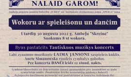Gaidīsim visus uz dančiem un Laimas Jansones koncertu 30.08.2022. plkst:20:00 Ambeļu estrādē (vai Mednieku namiņā, ja laikapstākļi nelutinās). Dancotājiem un klausītājiem 19. gs. tērpos balvas par smukākajiem tērpiem!